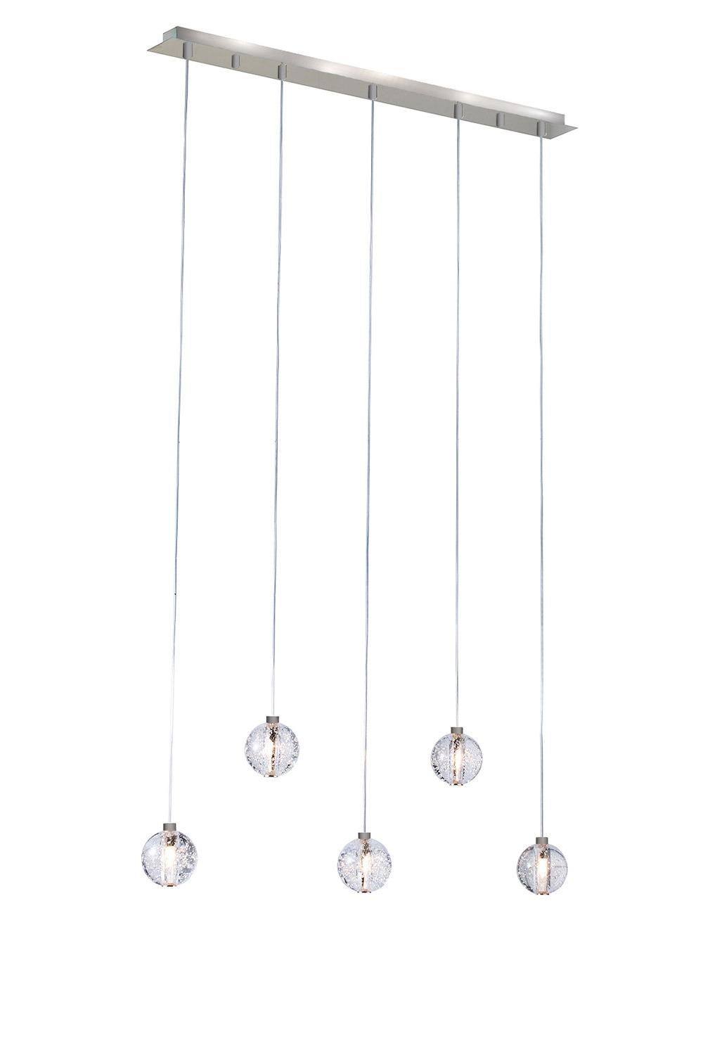 Our Stylish replaceable LED Bubble single pendant, styled with G9 LED, housed within a solid Crystal ball hand injected with air bubbles creating a unique pattern within each shade, with a Stainless steel polished Chrome base finish.